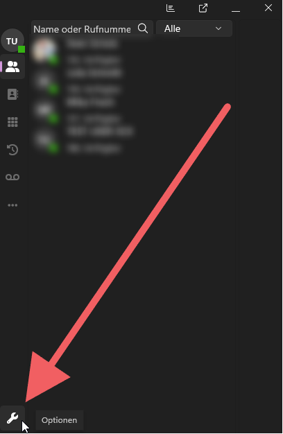 Klicken Sie unten links auf das Einstellungssymbol (Optionen).