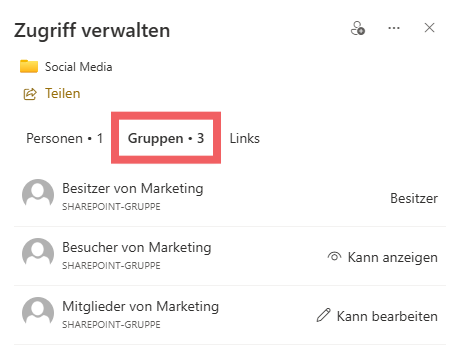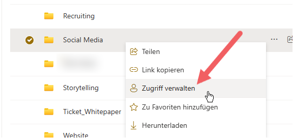 Klicke auf die drei Punkte neben dem Ordner oder der Datei → „Zugriff verwalten“