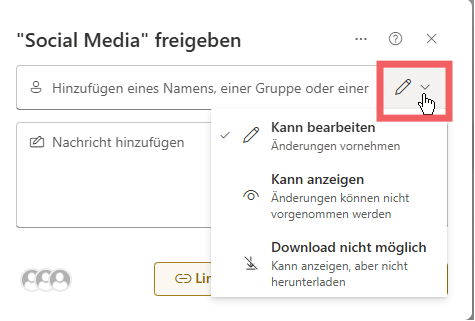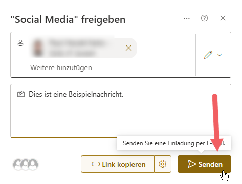 Hinweis: Externe Empfänger benötigen ein Microsoft-Konto.