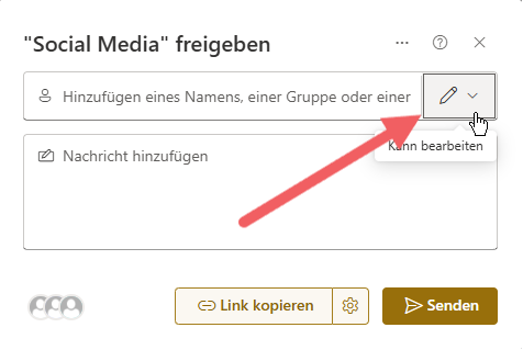 Datei, Ordner oder Seite freigeben