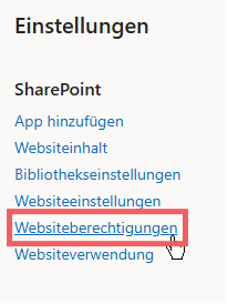 Klicke oben rechts auf das Zahnradsymbol (⚙) → dann „Websiteberechtigungen“
